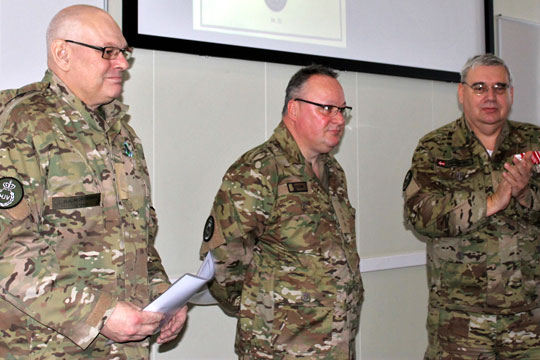 Modtagere af Commander`s Coin – kaptajn Michael Stuhr og sergent Erik Alstrup Mortensen.HædersbevisningerTo soldater ved Det Bornholmske Hjemmeværn har igennem mange år ydet en ekstra indsats i Hjemmeværnet. Efter kommandantens briefing blev kompagnichef for Politikompagni Bornholm, kaptajn Michael Stuhr, og signalbefalingsmand ved Hjemmeværnskompagni Rønne-Nexø, sergent Erik Alstrup Mortensen, kaldt frem og modtog Commanders Coin.