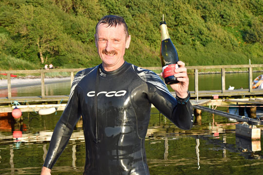 Han har svømmet de 119 kilometer i etaper siden sidste mandag. Formålet med anstrengelserne har været at sætte fokus på børn, der er pårørende til psykisk syge.
