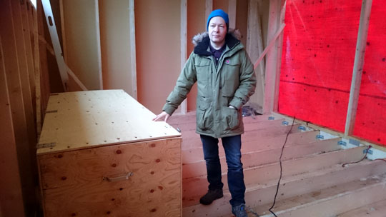 Peter Kongskov fra Byg-Grønt ved kassen, som gerningsmanden har opbrudt.Peter Kongskov fortæller, at indbruddet var i Byg-Grønts nye kontor, der er under opførelse.