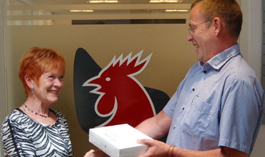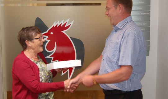 Lillian Munch var tydeligvis glad for gaven fra Lars Bresemann.