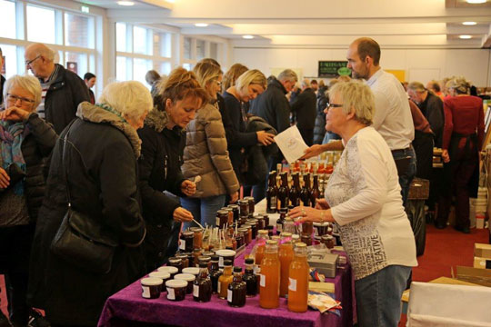 Flere af udstillerne have smagsprøver – ikke mindst den søde af slagsen. Blandt andre Kjærstrup Chokolade fra Snogebæk.