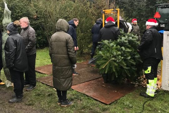 Juletræerne blev pakket i net, så de var lettere at transportere hjem.- Det er altid hyggeligt at få hilst på vores kunder og især traditionen med at møde kunderne udenfor de rammer, vi normalt mødes i, glæder mig rigtig meget. Det er med til at styrke vores relation til kunderne siger han.