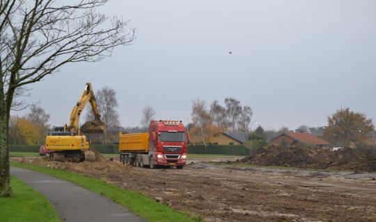 PL Entreprise A/S er kommet langt med at grave ud til to nye regnvandsbassiner ved Sagavej i Rønne.