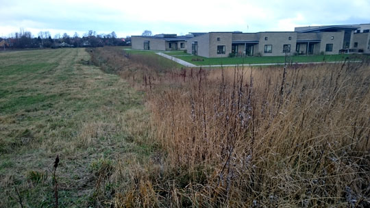 Her passes områderne ved at de i gennemsnit slår markerne syd og vest for plejecentret en gang om året. Der bliver dog reelt slået to gange om året, men hele arealet bliver ikke slået hver gang, da der efterlades uslåede bræmmer.