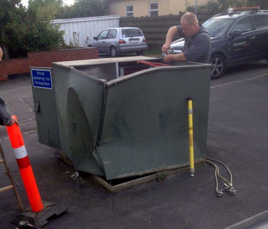 ”Bilen må have voldsomme skader efter påkørslen, for transformatorhuset, der vejer 1 ton, er skubbet så kraftig, at det har rykket sig 25 cm. Så der må have været temmelig høj fart,” siger Ole Westh.