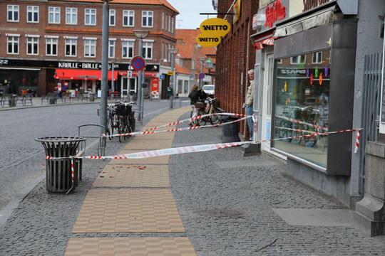 Senere måtte vi spærret en del af fortovet ved Netto på Store Torv på grund af nedfaldne tagsten. Desuden var der flere steder tagsten på kørebanen,” fortæller Ole Boskov.