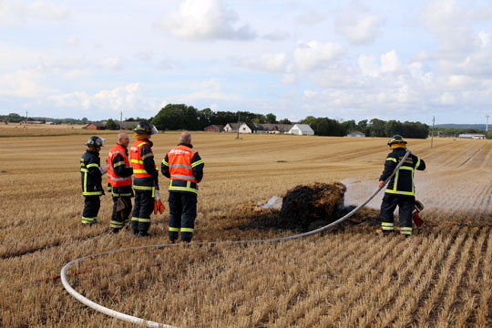 Bornholms Brandvæsen måtte trække en halv kilometer slange for at få slukket en meget lille markbrand ved Aakirkeby.