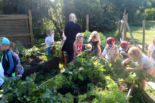 - Børnene er meget interesseret i at dyrke og er med fra start med at vende jord og gøre højbedene forårsklar til så, plante og lægge. Vi passer og plejer bedene - og børnene er gode til at dufte og smage på forskellige afgrøder.