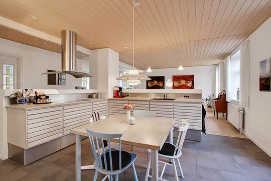 I stueetagen findes vindfang, entré, badeværelse og bryggers med vaske- og tørrefaciliteter samt en udgang til haven. Stueetagens trumfkort er det fantastiske opholdsmiljø med køkken, spiseplads og alrum samt stue med brændeovn. En mellemgang fører til et værelse, der kan indrettes som kontor eller legerum.