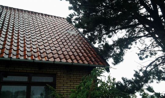 På Nørremarksvej i Ibsker slog lynet ned i taget, og der skete en del skader på tagkonstruktionen.