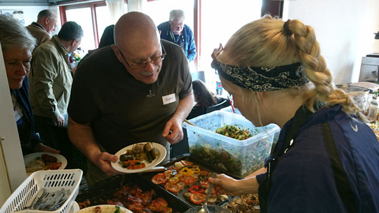 Formanden for Ældre Sagen Bornholm Birger Rasmussen var ikke sen til at tage for sig af lækkerierne...