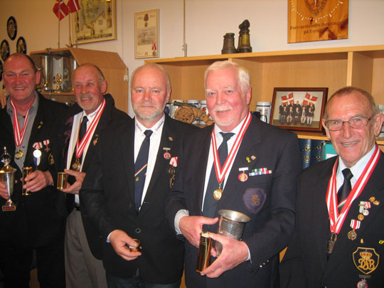 Vindere af årsskydningen. Fra venstre seniorskytter Ole Westh, Ebbe Gejl Hansen, frank Graversen. Veteranskytter Børge Henningsen og Finn Carlsen.I veteranklassen var det foreningens bedste skytte Børge Henningsen, der blev mester med 968 point. Finn Carlsen blev nr. to med 934 point og Frank Pauch kom ind på en tredjeplads med 887 point. På de efterfølgende pladser kom Søren Riis og Aage Vang.