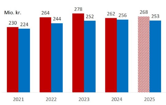 I 2024 var der budgetlagt 256 millioner, men regnskabet endte på 262 millioner. I 2025 er der afsat 253 millioner kroner, men kommunen forventer et forbrug på 268 millioner.