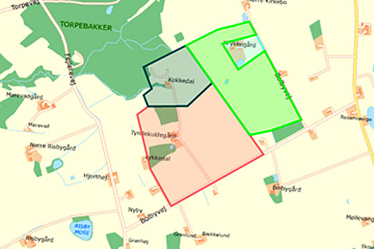 Banen vil højst sandsynligt skulle placeres i det mørkegrønne areal. Den nordlige del af det lysegrønne areal kan også komme i spil, som mulig placering.NaboprotesterForeningen Bevar naturområdet Torpe Bakker har indsamlet 282 underskrifter mod en planlagt motorsportsbane i Torpe Bakker.
