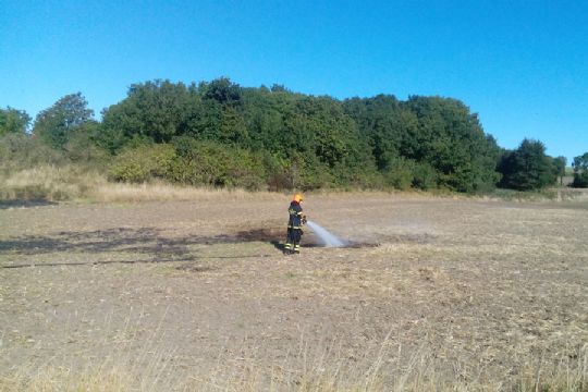 Branden er formentlig opstået, fordi et landbrugsredskab har ramt en sten og det har slået gnister.