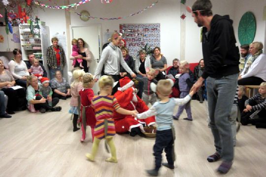 - De yngste vuggestuebørn sang en julesang. Et par af pigerne skulle have hjælp, da de ikke helt har lært at gå endnu.