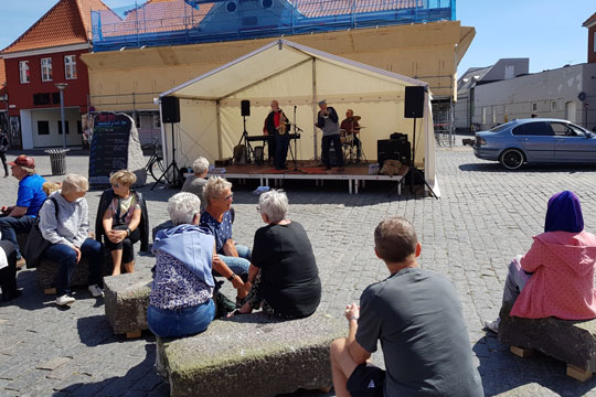 Det nye byrum summer allerede af musik og hyggelig afslapning.Længe ventetFormanden for Rønne Handelsstandsforening Jan Bidstrup sagde, at nyskabelserne var et skridt i den rigtige retning mod en bedre og mere spændende by.