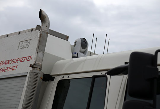 Køretøjet har varmesøgende kamera, som skydes op på en teleskopmast og som kan drejes rundt. Via to store skærme inde i førerhuset kan man så se alt.