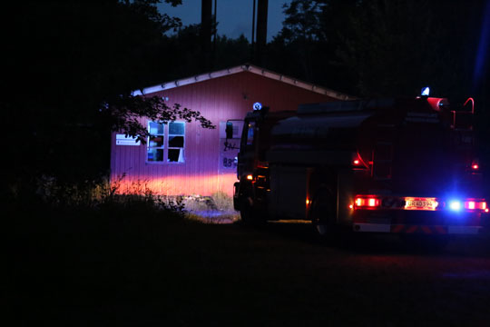 AAKIRKEBY – Bornholms Brandvæsen blev lørdag kl. 21:57 kaldt ud til brande i to træbarakker i den tidligere Bornholms Produktionshøjskole ved Aakirkeby Nordre Byskov.