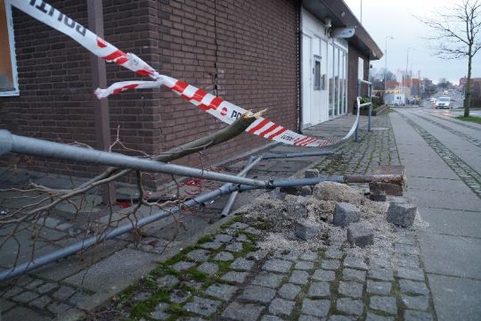Bilen ramte den tidligere bankbygning på Haslevej i Rønne.Det viste sig, at føreren ikke var kommet til skade, men var påvirket af euforiserende stoffer og alkohol, så prøver blev udtaget og føreren sigtet.
