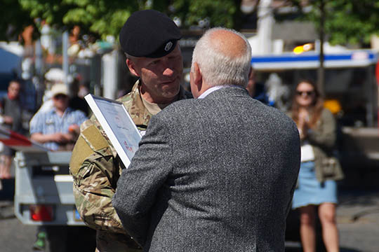 I forbindelse med paraden på Store Torv holdt formand Richardt Sølvertorp en tale og uddelte anerkendelsespriser.