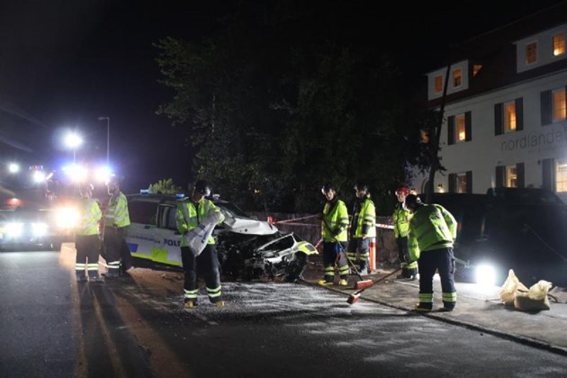 ALLINGE – En patruljevogn fra Bornholms Politi forulykkede onsdag kl. 21:26 under en eftersættelse ud for Hotel Nordlandet i Allinge/Sandvig.