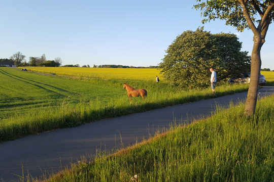 AAKIRKEBY – To betjente havde tirsdag aften held til at fange en løs hest mellem Lobbæk og Aakirkeby.
