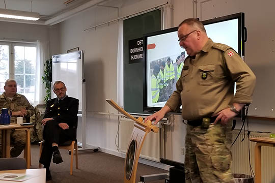 Kompagnichef Michael Stuhr fortalte om årets mange opgaver.Brande og drab- Året startede med vand, masser af vand på Snorrebakken i Rønne. Her var opgaven at sikre redningsberedskabets arbejde og at trafikken samtidig gled problemfrit ved denne hovedfærdselsåre. Selv om det var en våd og kold opgave blev der gået til den med krum hals.