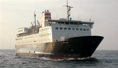 Første ture på ruten Ystad - Rønne er derfor søndag kl. 06:30 fra Rønne og kl. 08:30 fra Ystad med H/F "Villum Clausen".