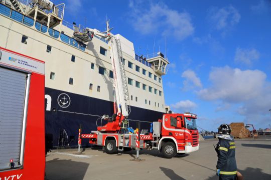 Også brandvæsnets lift blev indsat til at redde de tilskadekomne ned fra broen på færgen.