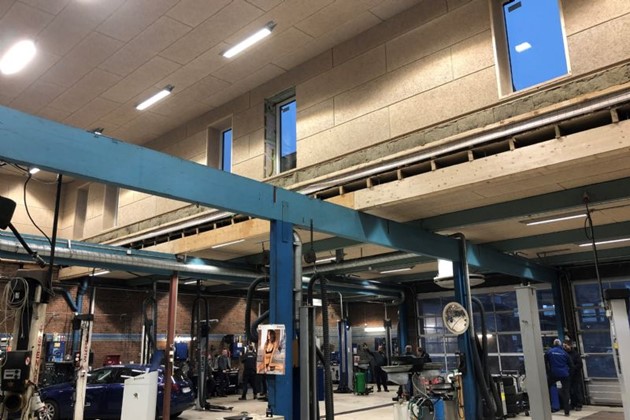 Den nye overbygning rummer blandt andet arbejdspladser til tre høje kassevogne. Nye lifte kan løfte 5,5 tons, hvilket er rigeligt til at bære selv de tungeste varebiler.