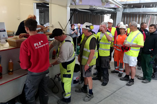Der var naturligvis pølser til håndværkerne.
