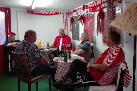 Til kamp i Parken- Der blev herefter hyggesnakket til ud på de sene eftermiddagstimer om tidligere og - forhåbentligt - kommende busture til Parken, som her den 5. september, når herrelandsholdet møder Belgien i den første Nations League kamp, fortæller kasserer Glenn Hansen.