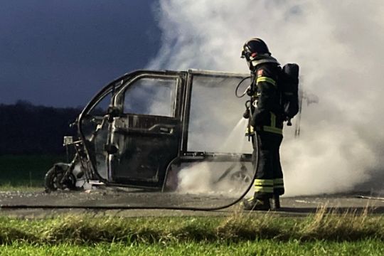 Det lykkedes ikke at redde køretøjet, som udbrændte totalt.
