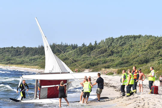 - De kæntrede med deres katamaran, som så drev ind mod stranden. De er kommet uskadte i land med deres fartøj. Så det endte lykkeligt, siger indsatslederen.