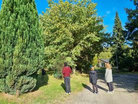 Familien Sandersen har taget turen fra Aarsdale til Sorthat for at se, om de kan få øje på den hærfugl, der de seneste par dage er set i sommerhusområdet omkring Sahara og Holmegaardsvej i Sorthat.