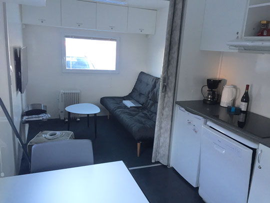 Den nye genhusningsvogn har plads til fire personer og er indrettet med stue med sovesofa og sofabord, 42 ” fladskærm med PlayStation, køkken med spisebord, køleskab, opvaskemaskine, mikroovn og service til fire personer samt 17” fladskærm.