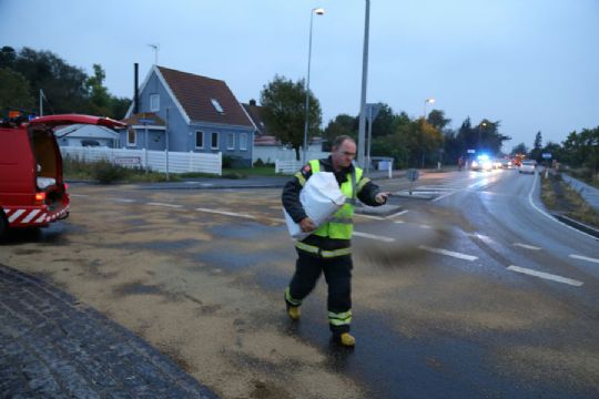 - Det viste sig, at en lastbil har spildt hydraulikolie på en strækning fra Skansevej på Rønne Havn via Zahrtmannsvej og Almindingsvej og Snorrebakken til Almegårdsvej i Knudsker.