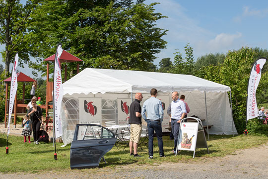 Bornholms Brandforsikring, der er hovedsponsor på travbanen (deraf navnet Bornholms Brand Park) benyttede også lejligheden til at reklamere for sine produkter.