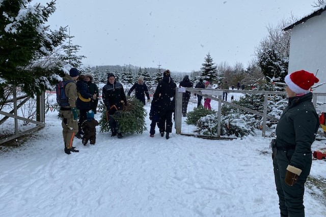 300 mødte fremCa. 300 kunder fandt vejen forbi juletræsplantagen, og de kunne efter veloverstået ”fangst” af årets juletræ, forsyne sig med varme pølser, popcorn og drikkelse, som bankens personale stod og serverede, med julemusikken kørende i baggrunden.