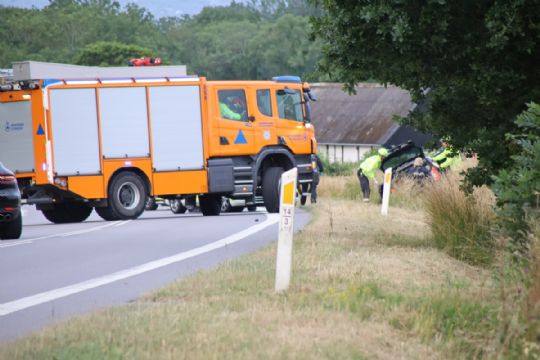 Bilen kørte i grøften, og politi, ambulancer, akutbilen og redningsmandskab fra Bornholms Brandvæsen blev sendt til stedet.