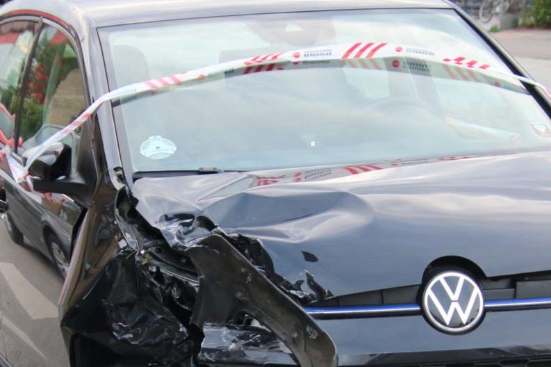 | Ved Saltuna sad en tysk turist sad fast med sin bil i en mudderbanke, skyllet ud på vejen fra markerne. Foto: P-E Rath Holm |