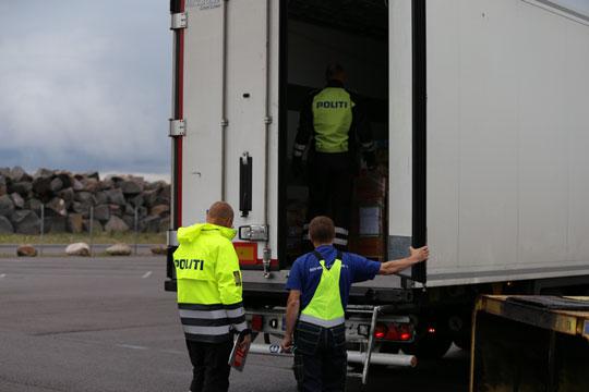 Trailerne blev kontrolleret på havnearealet, efter at M/F ”Hammerodde” var ankommet til Rønne kl. 06:30.