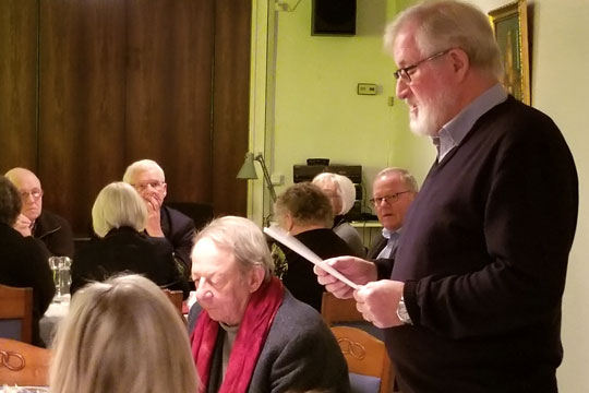 Hans Kümler trak sig efter beretningen fra formandsposten i utide for at give plads til friske kræfter. I midten aftenens dirigent Christian Dohn. Bag formanden ses næstformand Flemming Koch.Ellers kunne formanden fortælle om et aktivt år med fire vinarrangementer.