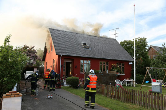 Da brandfolkene ankom, var der kraftig røg fra husets 1. sal. Hurtigt efter brød flammerne gennem taget.
