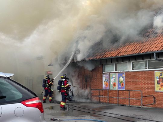 NEXØ - Der opstod i eftermiddag en voldsom brand i dele af Kvickly Nexø.