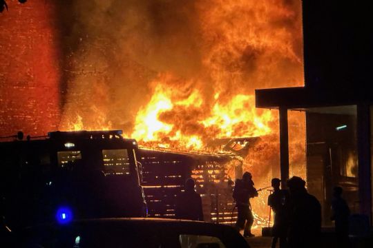 Brandvæsenet kæmpede for at sikre sig, at branden ikke nåede at få fat på bygningerne. Men branden var kraftig og fik fat på facaden til den foranstående bygning.