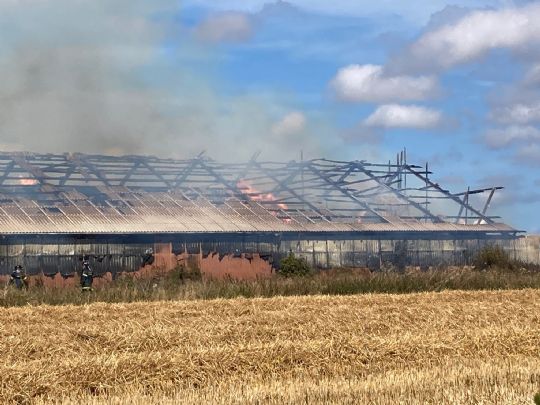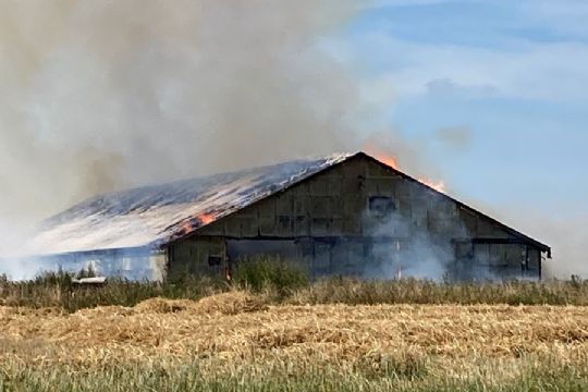 POULSKER - Der opstod onsdag eftermiddag en voldsom brand i en længe med halm på en gård på Brandsgårdsvejen.