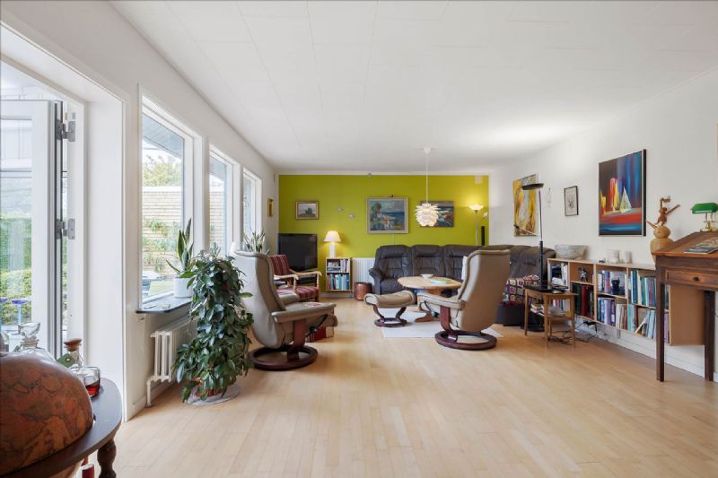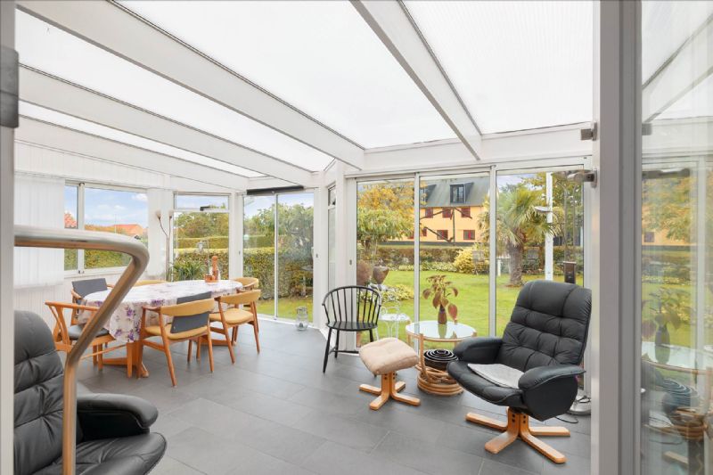 Opført i gule mursten og accentueret med hvidmalede termovinduer samt et klassisk rødt tegltag, udstråler villaen både tradition og elegance. En af de mest iøjnefaldende træk ved ejendommen er den store, lyse og indbydende havestue, som tilbyder et behageligt opholdsrum året rundt.