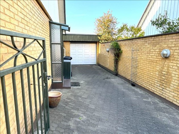 Grunden på 384 m² er anlagt med flisebelagt indkørsel til en muret garage og en aflukket have, hvor solens stråler kan nydes det meste af dagen. Haven rummer både fliseareal, græsplæne, frodig beplantning og en skøn træterrasse, perfekt til hyggelige udendørsstunder.